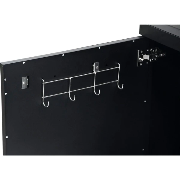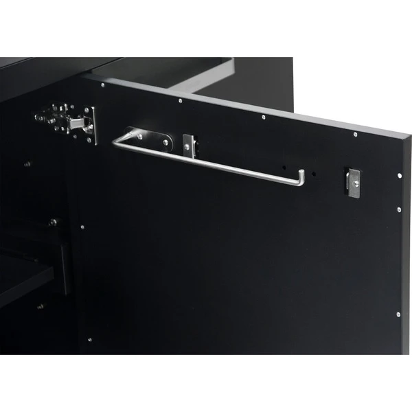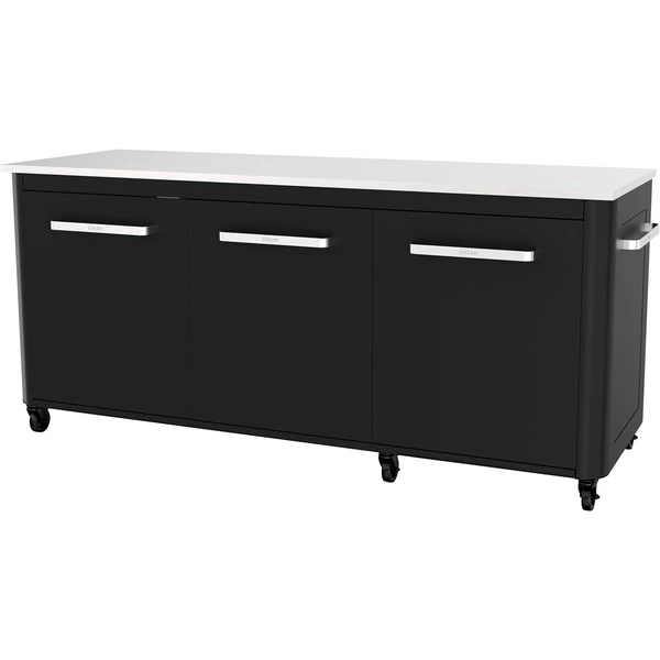 Der Cozze Tisch für die Außenküche aus verzinktem lackiertem schwarzem Stahl besitzt eingebaute Mülleimer und 3 Türen, sowie sechs starke Räder mit 75 mm Durchmesser, die elektroverzinkt sind und eine schwarzer Pulverbeschichtung haben. Zur weiteren Ausstattung gehört eine Glasflaschenhalterung.Art.-Nr.: 1904637