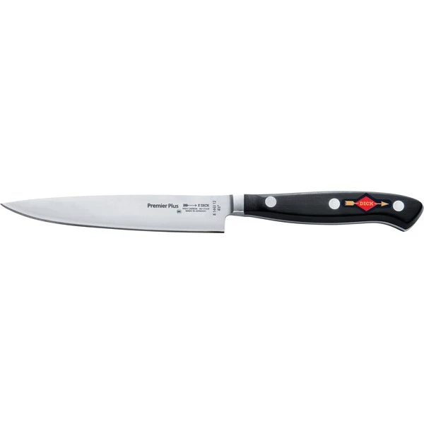 Officemesser sind klein, wendig, scharf und gehören zum Grundsortiment in der Küche. Das Premier Eurasia Officemesser 81447122 von DICK ist ein unentbehrliches, vielseitiges Werkzeug für Schälarbeiten, kleine Schneidarbeiten und Verzierungen. Professionelle Köche setzen auf die Messer der Serie Premier Plus von DICK. Die atemberaubende Schärfe, die Leichtigkeit und das klassisch elegante edle Design überzeugen Küchenchefs auf der ganzen Welt. Besonders beim täglichen, langen Arbeiten mit dem Messer sind die Griffform ohne störende Kanten und die ergonomische Form von großer Bedeutung. Mit Liebe zum Detail werden die Messergriffe der Serie Premier Eurasia in feinster Handarbeit aufwändig abgerundet und liegen daher sehr angenehm in der Hand. Jedem Messergriff wird von erfahrenen Profis mit viel Sorgfalt der letzte Schliff verliehen. Besonders großer Wert auf die einwandfreie, erstklassige Schärfe der Messer gelegt. Die Klinge ist aus der hochwertigen Legierung X50CrMoV15 gefertigt, sie steht für lange Schnitthaltigkeit, Verschleißfestigkeit und höchste Endschärfe. Selbstverständlich sind die Premier Eurasia Messer absolut hygienisch. Durch das besondere Herstellungsverfahren werden die Griffe spaltenfrei mit der Klinge verbunden, so dass keinerlei Speisereste oder Flüssigkeiten eindringen können.Art.-Nr.: 1707660