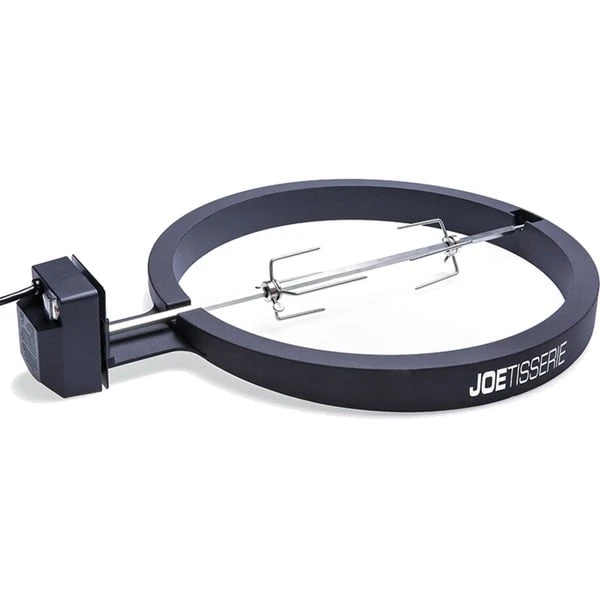 Mit der JoeTisserie wird aus dem Kamado Joe Classic ein neuartiger Bratspieß. Er macht sich den Rotisserie-Effekt im charakteristischen, extrem heißen Keramikkorpus des Kamado Joe zunutze. Das Fleisch wird durch das konstante Drehen im eigenen Bratensaft gegrillt und bleibt rauchig, saftig und zart. Der leise, aber leistungsstarke Motor kann bis zu 22,5 Kilo Hähnchen, Hochrippe oder Schweinenacken am Spieß bewegen. Zudem kann der Kamado-Deckel dank der speziellen Keilform des innovativen JoeTisserie verriegelt werden, damit weniger Hitze entweicht. Der solide Spieß ist leicht anzubringen und ist mit schnell einstellbaren Gabeln zur perfekten Justierung des Spießbratens ausgestattet. Ohne jegliche Änderung am Grill passt der keilförmige langlebige Aluguss-Ring JoeTisserie genau auf das Gerät und schließt luftdicht ab. Dadurch kann man kinderleicht über offener Flamme am Spieß grillen, ohne ständig selbst drehen zu müssen. Die JoeTisserie enthält einen 240 Volt Motor und einen spülmaschinenfesten Spieß mit einstellbaren Schraubverbindungen.Art.-Nr.: 1528836
