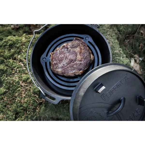 Der Feuertopf ft4.5-t von Petromax eignet sich für 2 – 5 Personen. Die Petromax Feuertöpfe, auch als Dutch Oven bezeichnet, sind ideale Begleiter für Draußen-Aktivitäten wie Reisen, Camping, etc. Mit ihnen garen Speisen, wie z.B. Fleisch und Gemüse, sehr schonend im eigenen Saft über offenem Feuer oder im heimischen Backofen sowie auf allen Herdarten. Der einzigartige Geschmack entsteht durch die konstante Rundumwärme im Topf. Die Deckel der Feuertöpfe können zudem auf Wunsch als Servierplatte oder Pfanne genutzt werden. Dank der vorbehandelten Oberfläche (seasoned finished) ist der robuste Petromax Feuertopf aus Gusseisen sofort verwendbar. Mit den Petromax Feuertöpfen kann man draußen leckeres und gesundes Essen für Familie und Freunde zubereiten.Art.-Nr.: 1532721